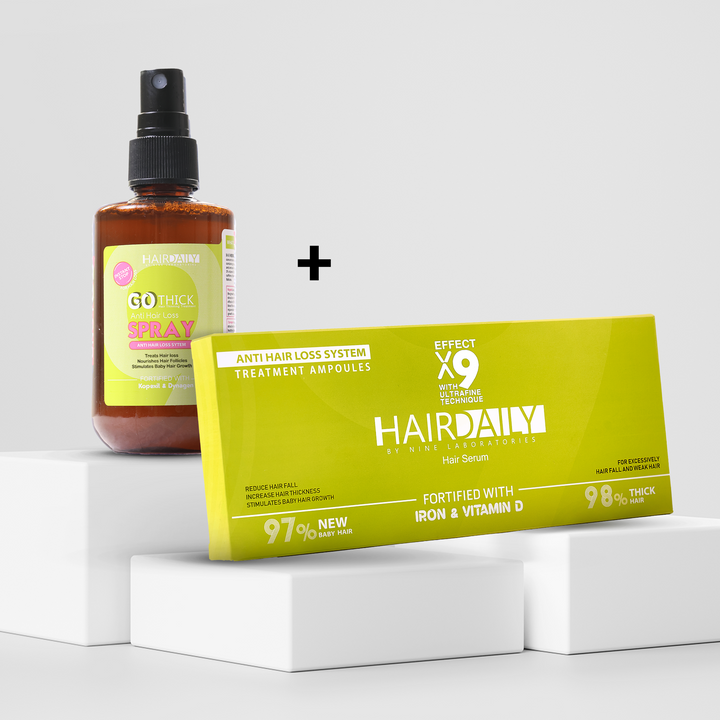روتين جوثيك الطبي هو الحل الأقوى لعلاج جميع مراحل تساقط الشعر — من المتوسط للشديد والوراثي للسيدات. بيجمع بين سبراي جوثيك و أمبولات جوثيك الطبية بتركيبة مدعّمة بأحدث المواد الفعالة مثل الداينجين، الكابكسيل، البروكابيل، والريدينسيل. الروتين يعمل على وقف التساقط فورًا، تحفيز نمو بصيلات جديدة، وزيادة الكثافة بشكل آمن وسريع. خالي تمامًا من المينوكسيديل و السيليكون والبارابين، علاج فعّال وآمن 100%
